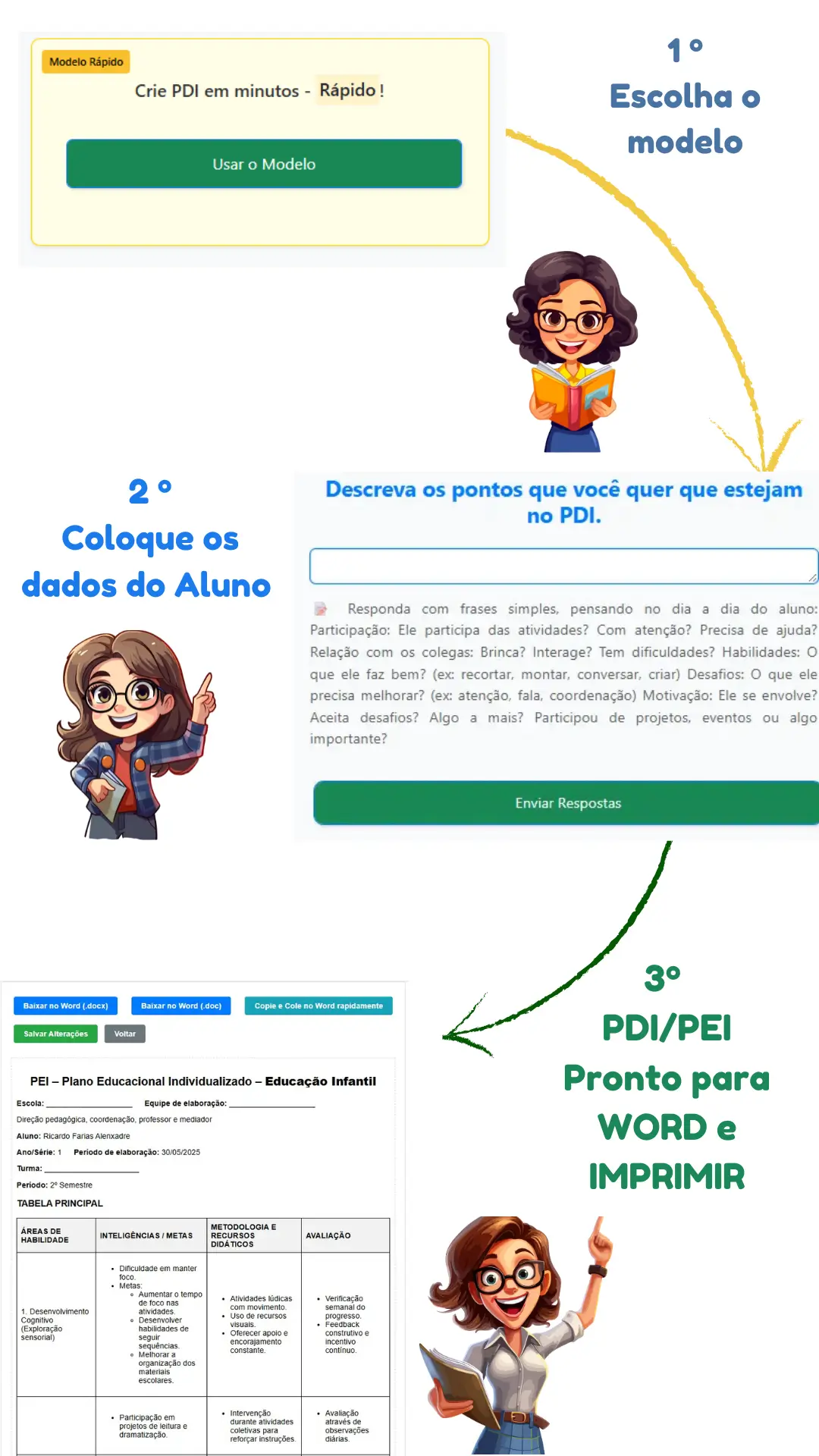 Recebe PDI, PEI, relatórios e planejamentos — tudo pronto, personalizado e alinhado à BNCC.
